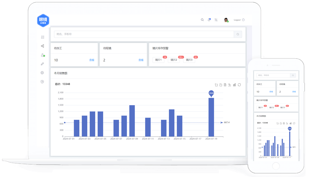 专注于眼镜行业,深度量身定制,手机端、电脑端数据实时同步。
